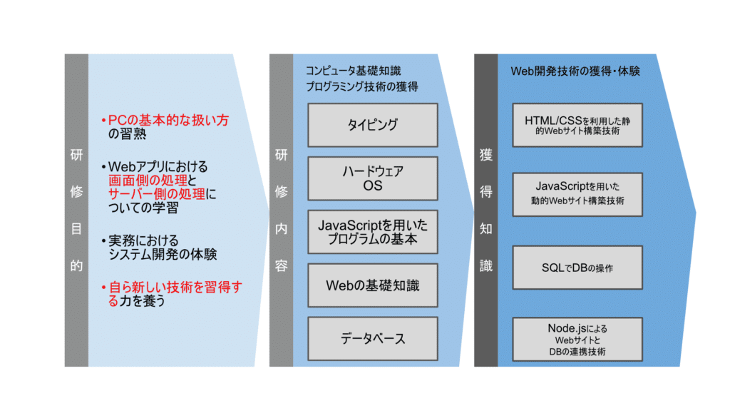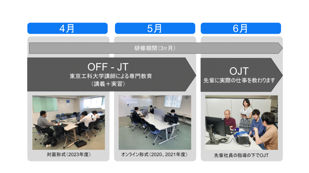 • OJTは実際の開発プロジェクトに参加して先輩から指導を受けます