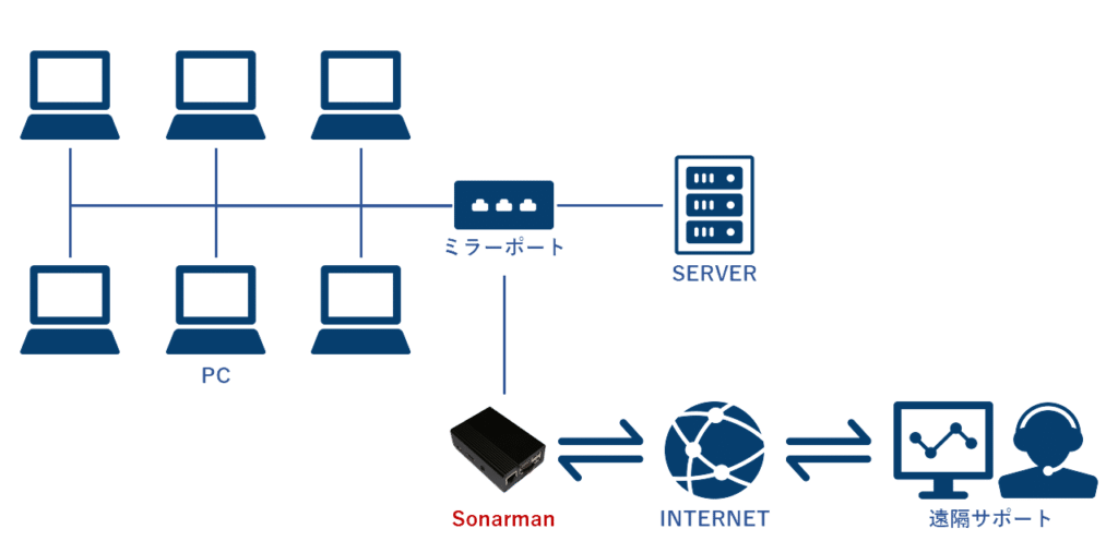 1. Sonarmanをオフィスに設置、ミラーポートに接続