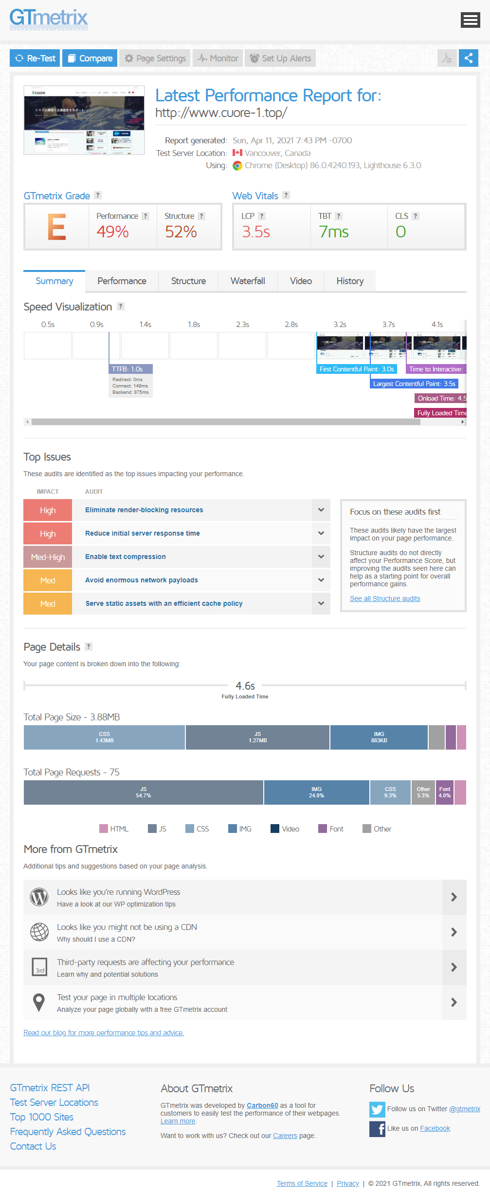 GTmetrixを使った評価結果の比較