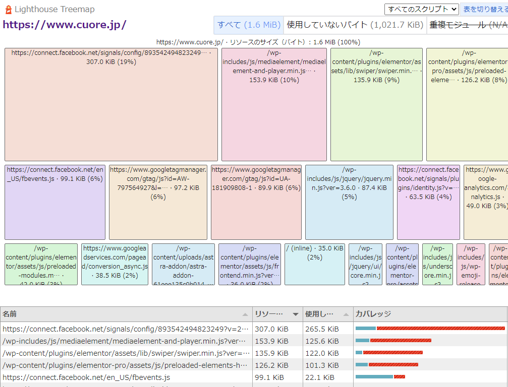 ElementorのEssential Addonsがかなり重い様子。