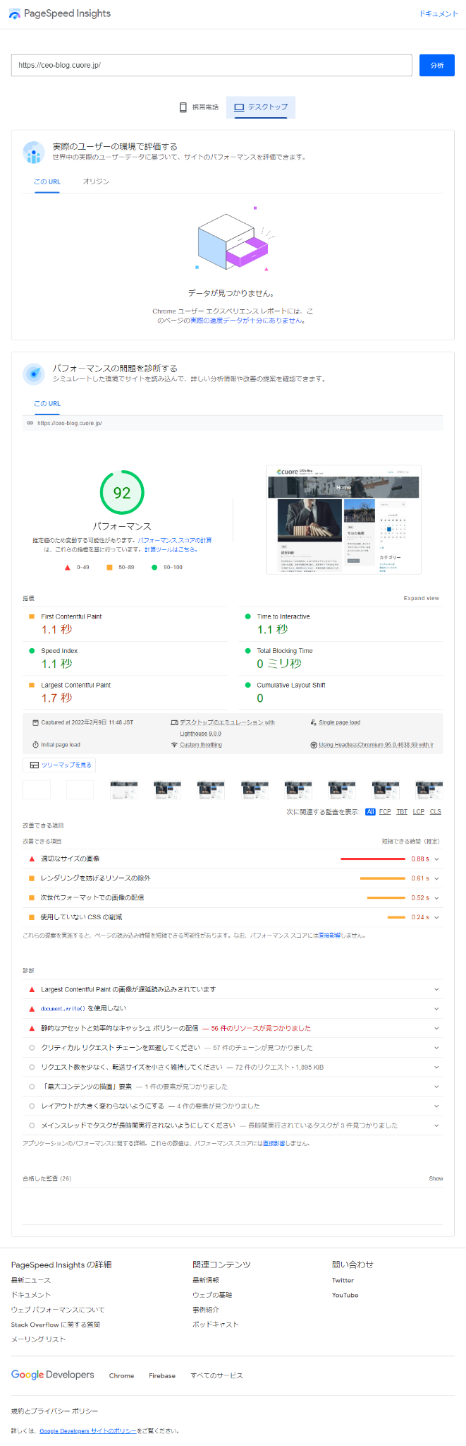 WordPressのプラグインであるJetpackが便利なので使用していますが、一般的にプラグインの中には表示速度のパフォーマンスに著しく悪影響を与えるものもあります。プラグインには便利な機能があり無料のものも多くて重宝しますが、高機能なプラグインはその分だけパフォーマンスを犠牲にする場合が多々あります。Jetpackも様々な機能を持っているだけにパフォーマンスへの影響が心配だったので「PageSpeed Insights」でプラグインのインストール前後で比較しました。