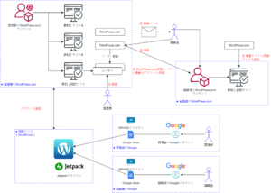 GoogleとWPの連携 目指すこと この記事では、1つあるいは複数のWordPressサイトに対して複数の投稿者がGoogle Docsからボタン一つで投稿できるようにする設定を行います。 このしくみに関わる人々(プレ