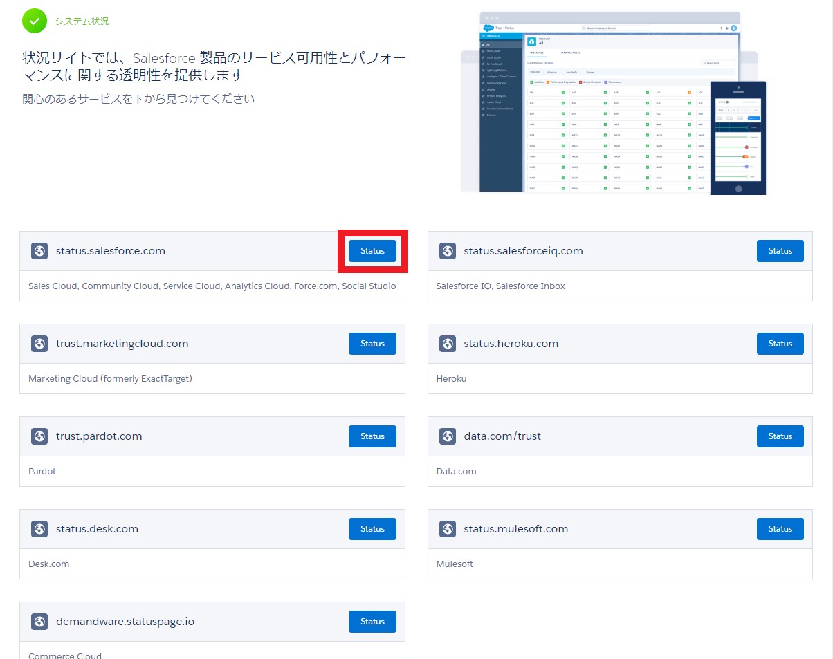 ユーザから「急にアクセスできなくなった」と問い合わせが来ても慌てず、まずはTrustを確認してSalesforce環境として稼働しているか確認してみましょう。