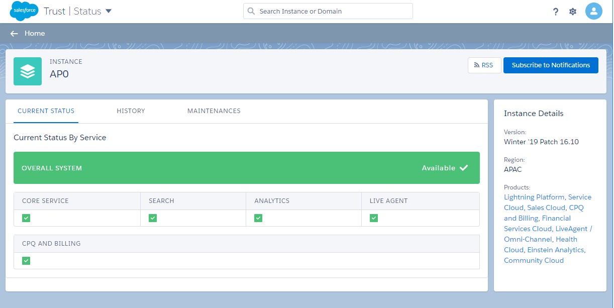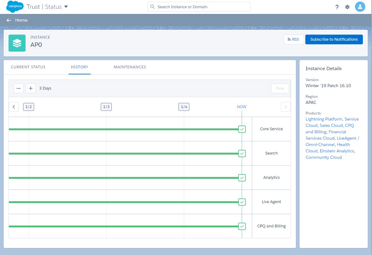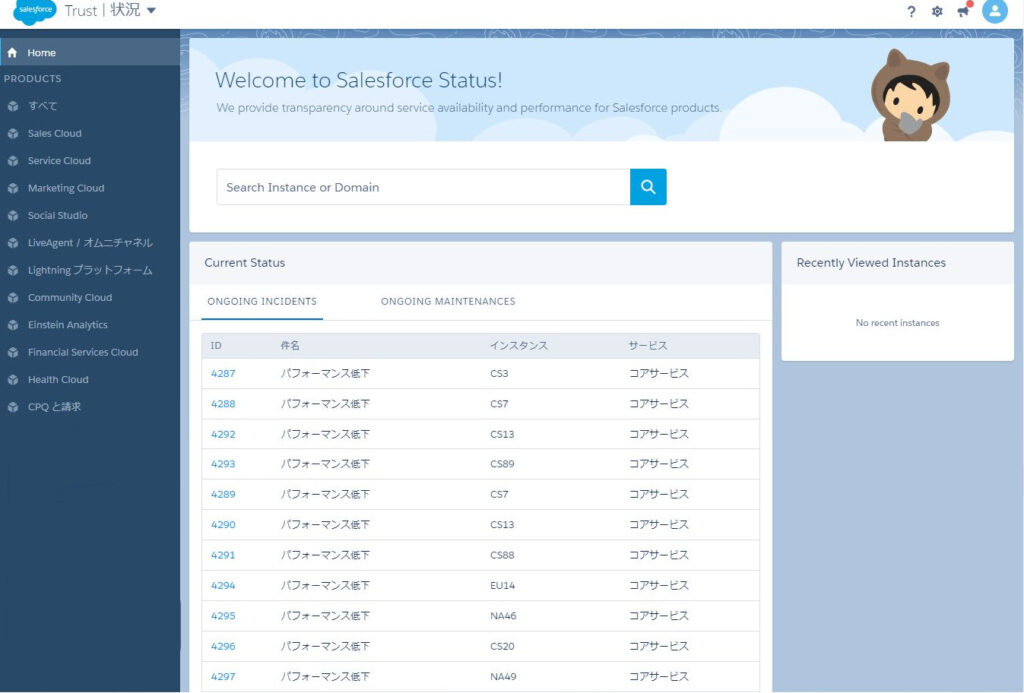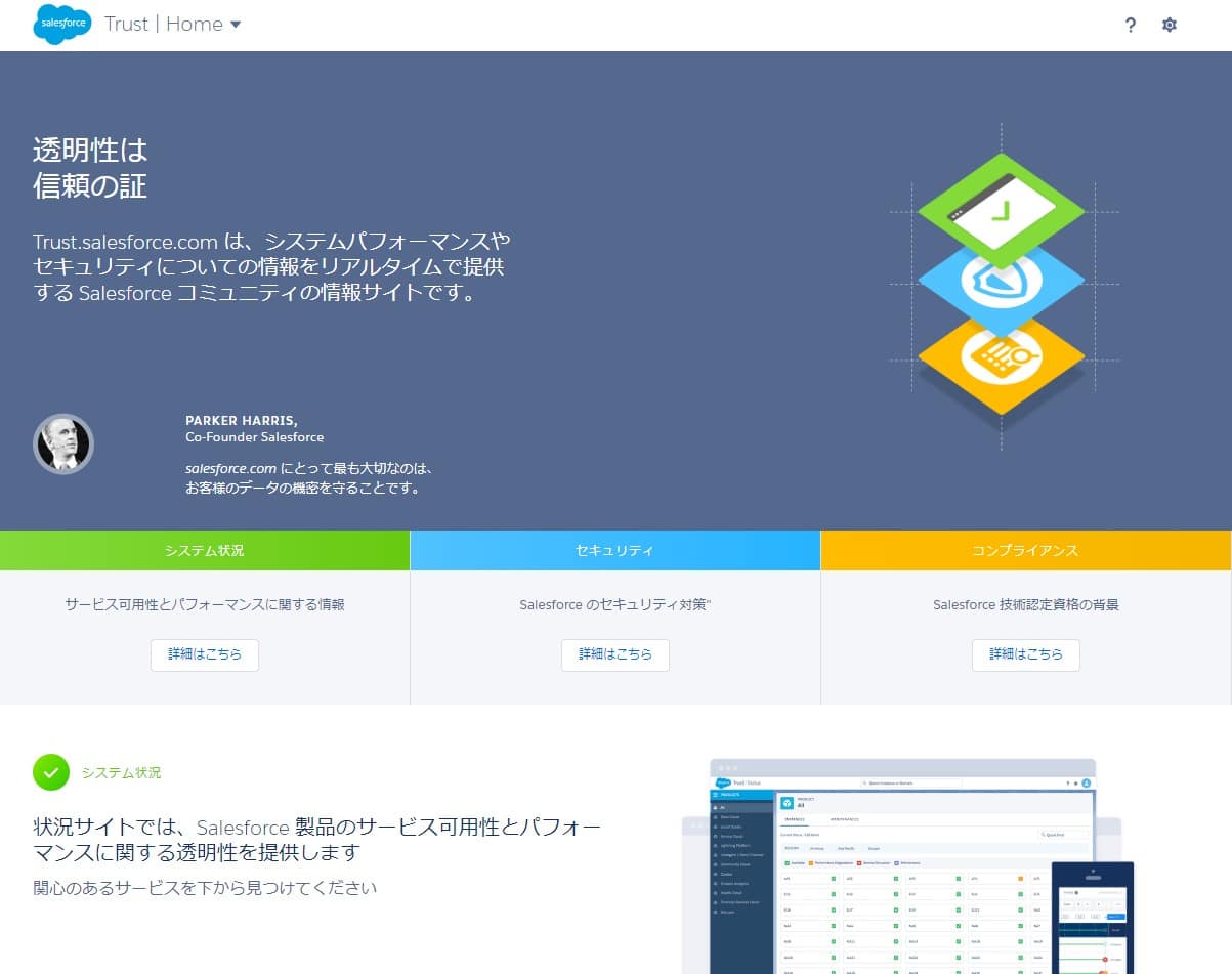 「Trust」とは、Salesforceが公開している稼働状況の見える化サイトです。