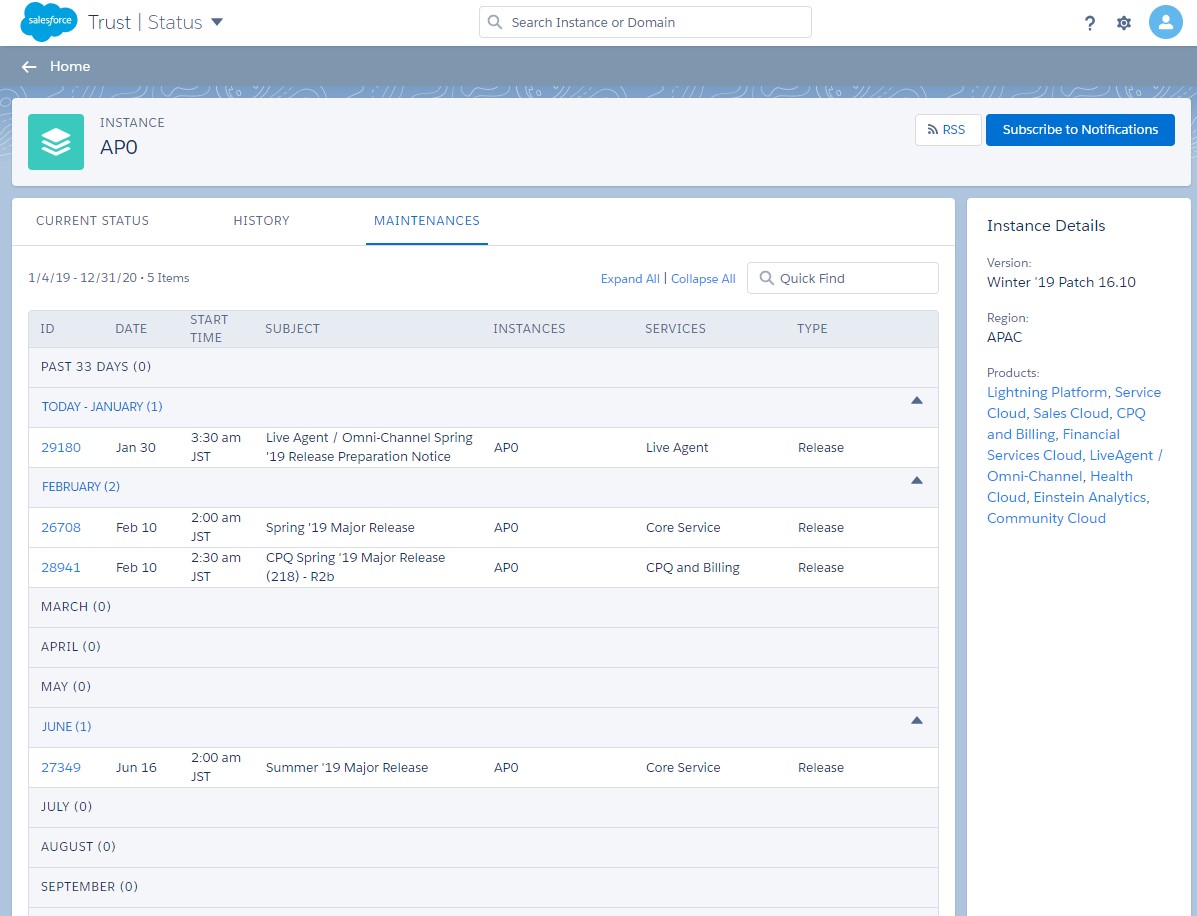今回は、そんなSalesforceの稼働状況を確認する方法を見ていきましょう。