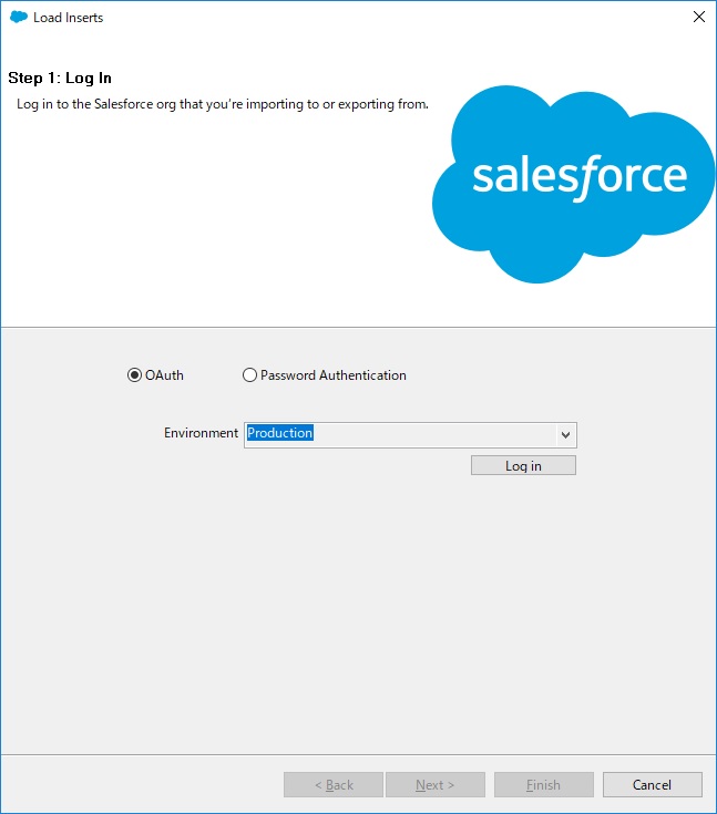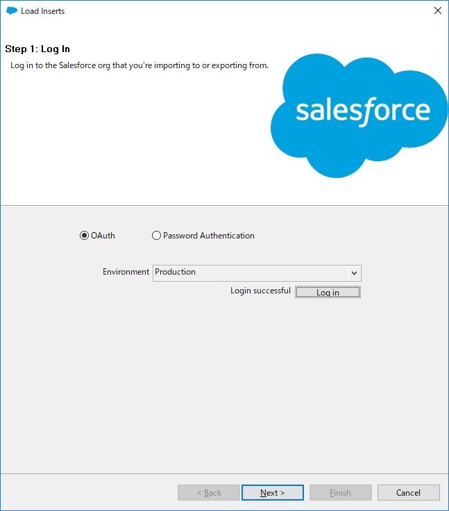 では、早速Dataloaderを起動してみましょう。