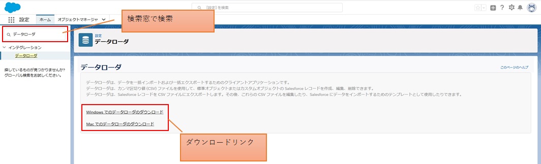 ※Mac用は「Macでのデータローダのダウンロード」をクリック