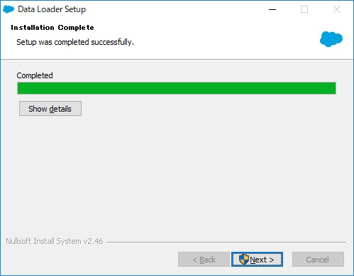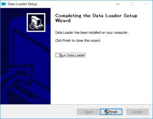 Finishで終了して下さい。「Run Data Loader」にチェックを入れておくとインストール完了後にすぐに起動してくれます。