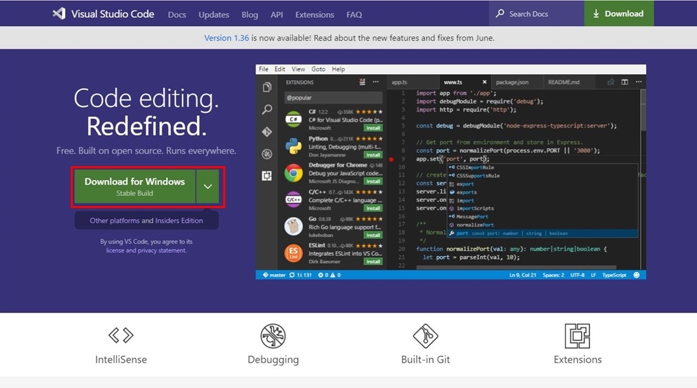 Visual Studio Code:Ver 1.36.1