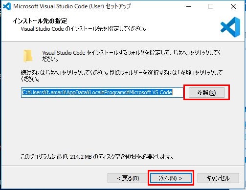 「参照(R)」をクリックして、ファイル一式をインストールする場所を指定します。