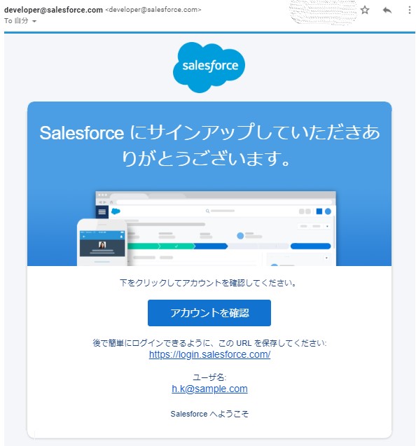 入力したメールアドレス宛に、Salesforceからサンキューメールが届きます。