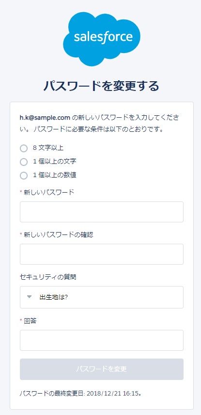 すべての入力が終わり、入力値に問題がなければ、「パスワードを変更」ボタンの色がグレーからブルーへ変わりますので、クリックしてください。
