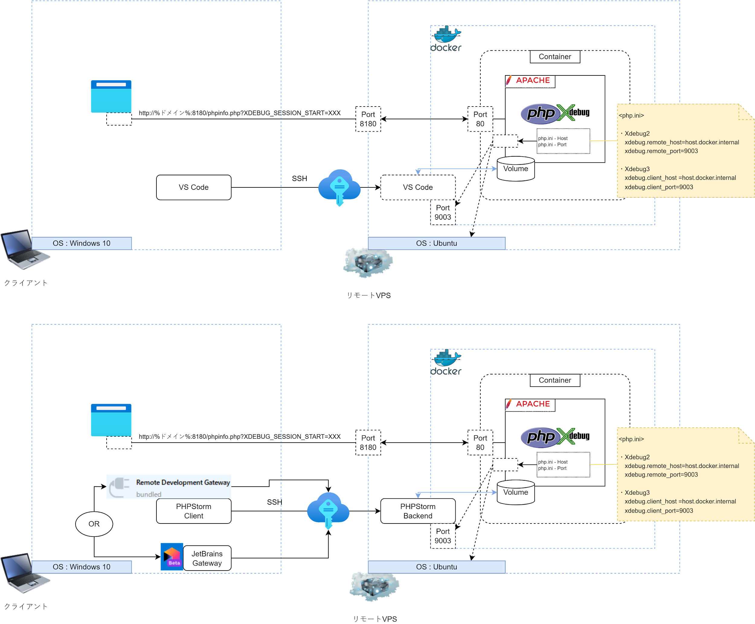 リモート開発に関してはVS CodeとPHPStormではアプローチが違っている。