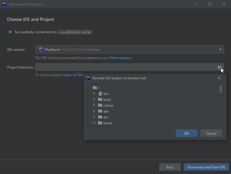 プロジェクトのパスを入れてDownload and Start IDEをクリック。(何をダウンロードするのだろうか、それは次のイメージで明らかに)