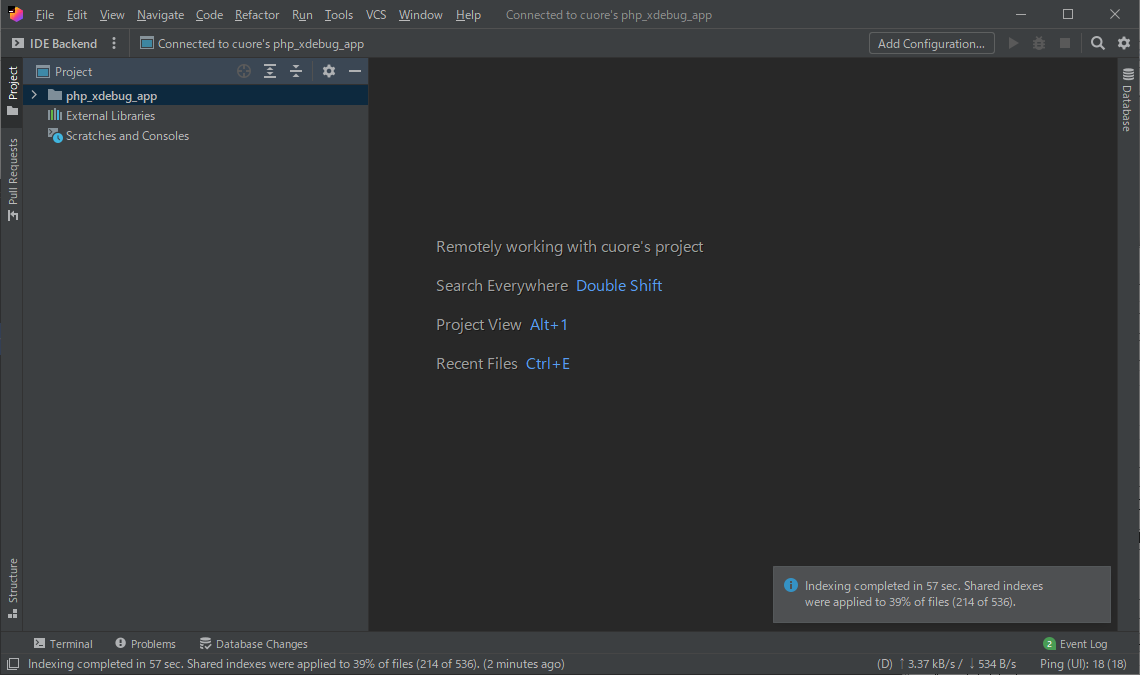 IDE system directory: ~/.cache/JetBrains/RemoteDev-PS/_home_cuore_php_xdebug_app