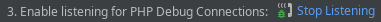 この画面のなかにポートのListeningボタンがあります。なぜかIDE本体のデバッグツールバーにはありません。最初これをほったらかしでテストして全くブレークポイントで止まらず悩みましたが、ここをONにしたら正常に止まりました。こりゃちょっとした罠ですね。