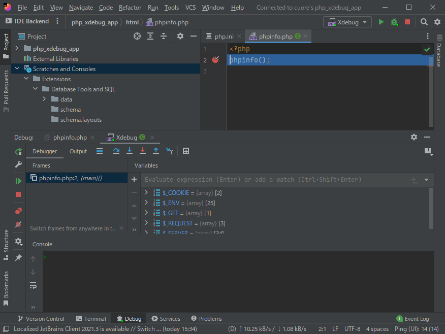 IDE config directory: ~/.config/JetBrains/RemoteDev-PS/_home_cuore_php_xdebug_app