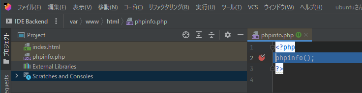 Xdebugのための設定は弐ノ型と同様ですが、IDEの見た目がローカルとリモートバックエンド接続とで少し違うので念のためスクリーンショットを載せます。