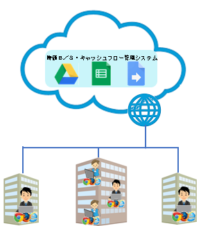 - Googleスプレッドシート、Googleドライブ+Google Appsを使用したWEBサービス。